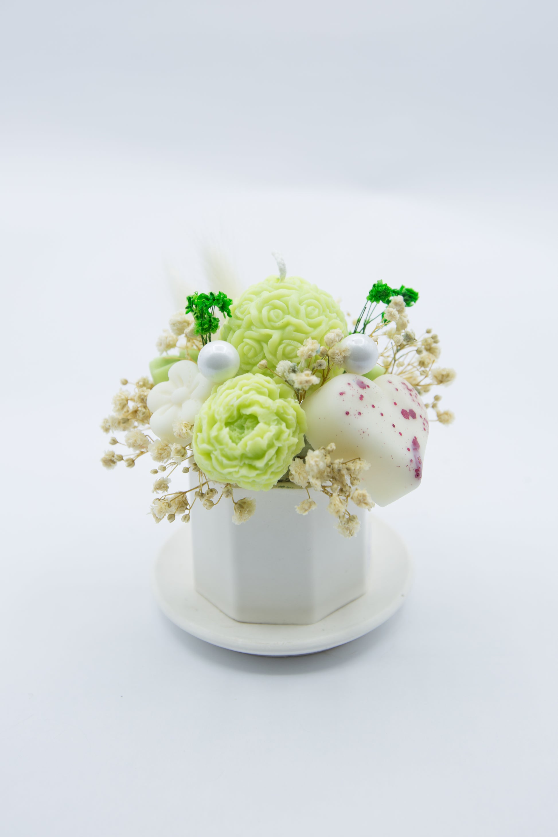 Découvrez ce vase Hexago, au design géométrique moderne, réalisé avec soin en plâtre résine. Élégant et tendance, il apporte une touche contemporaine et originale à votre décoration. Personnalisable selon vos envies, il vous permet de choisir la couleur et la senteur du bouquet de fondants, pour créer une ambiance parfumée unique qui sublimera votre intérieur avec caractère et raffinement.