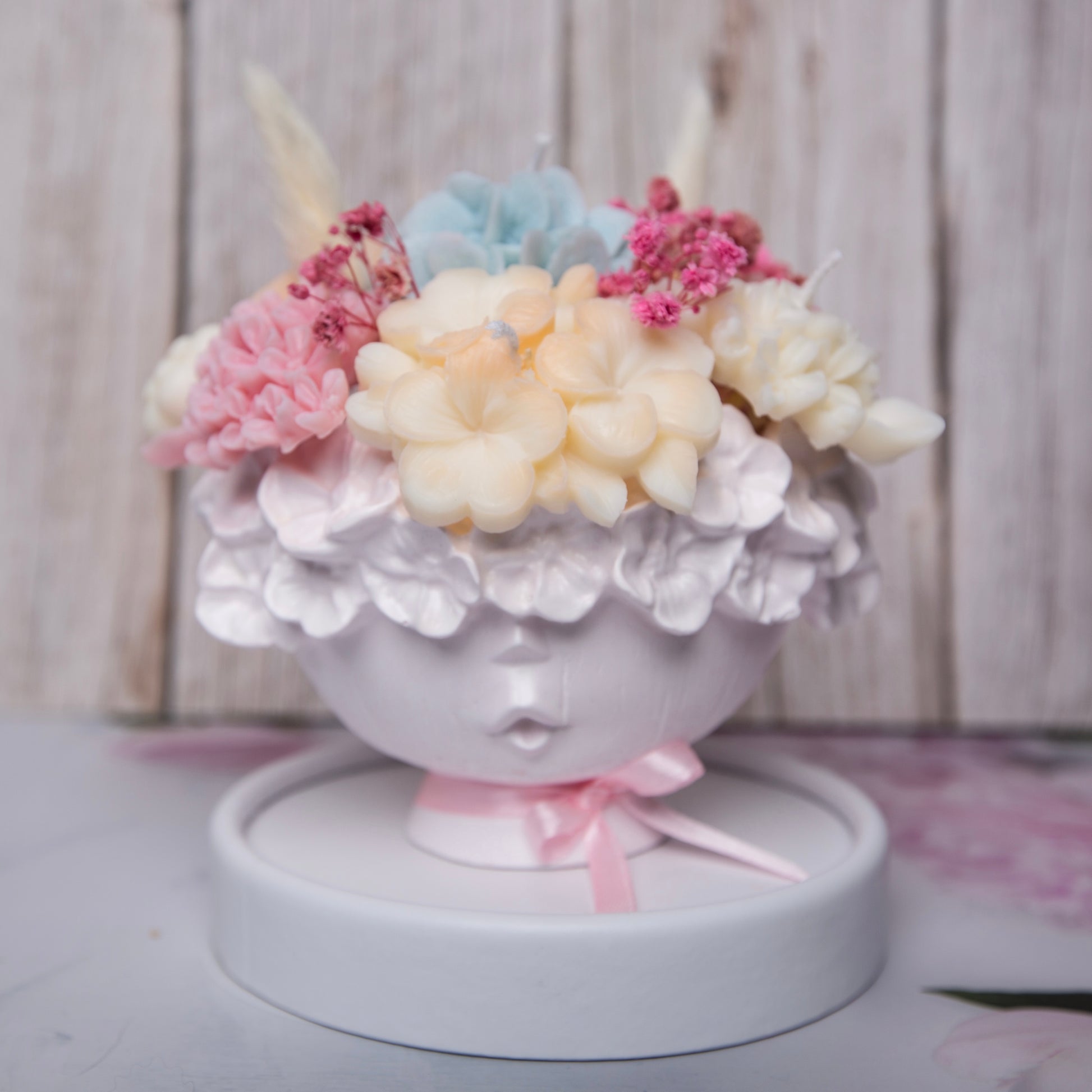 Découvrez ce ravissant vase en forme de fillette fleurie, délicatement façonné en plâtre résine. Son style doux et printanier apporte une touche de poésie et de fraîcheur à votre décoration. Entièrement personnalisable, il vous permet de choisir la couleur et la senteur du bouquet de fondants, pour créer une atmosphère parfumée unique, lumineuse et pleine de charme dans votre intérieur.